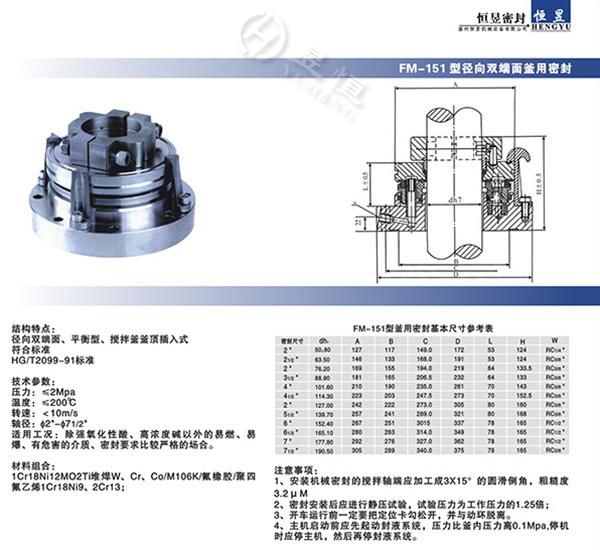 FM-151型徑向雙端面釜用密封
